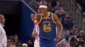 库里的反应一向有意思:当看见激动人心的好球的时候,他会在场边跳跃。但是当看见狡猾轻妙的进球时,他会莞尔一笑“嘿嘿嘿,又被骗到了吧?”吉米常引发库里的后一种反应。