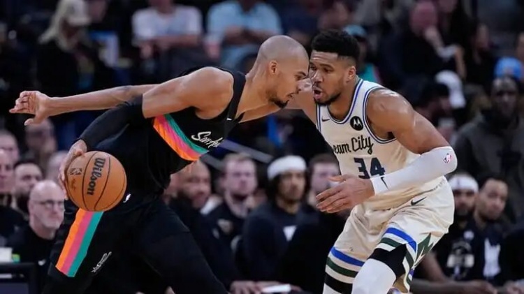 比如文班盖罗林斯,是和队友合力完成;之后他忽然选择去夹击底线,凯尔登回身抄球,哈珀反击,马刺一口气领先15分。